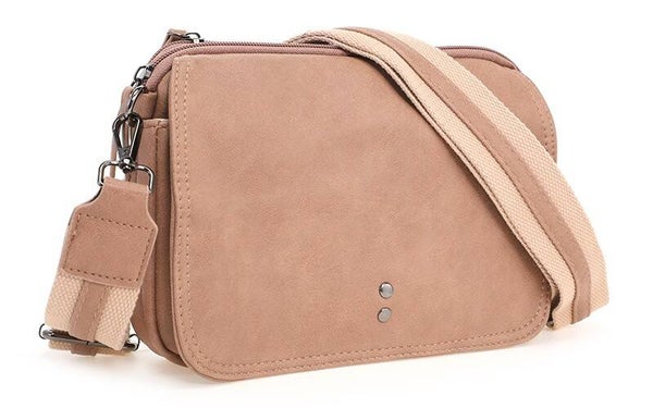 Op zoek naar een klein, maar fijn tasje voor je dagelijkse avonturen? Dit tasje is de perfecte match! Met een flap die sluit met een drukmagneet en twee ruime ritsvakken aan de bovenkant, biedt dit stijlvolle tasje genoeg ruimte voor je telefoon, pasjes en andere essentials.